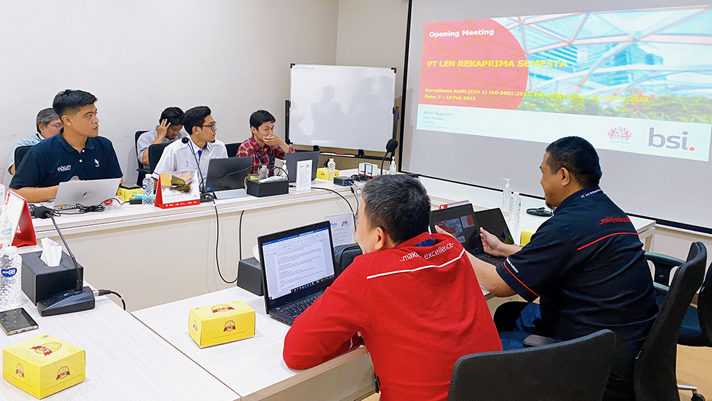 On 7 – 10 February 2023, PT Len Rekaprima Semesta conducted a Surveillance Audit for the Quality, K3 & Environment management system (ISO 9001 : 2015, ISO 14001 : 2015, 45001 : 2018) by the BSI certification body. By consistently implementing the Quality, K3 & Environment management system, PT Len Rekaprima Semesta received a recommendation to continue the ISO 9001: 2015, ISO 14001: 2015, 45001: 2018 certificates in 2023. This activity aims to ensure the implementation of Quality, K3 and Environmental Management systems against ISO standards ISO 9001: 2015, ISO 14001: 2015, 45001: 2018. This activity takes place offline by taking our sample project at APMS Soekarno Hatta Airport and also every Department in Head Office.