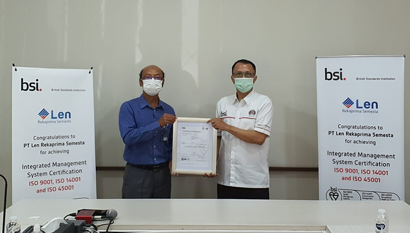 On 7 – 10 February 2023, PT Len Rekaprima Semesta conducted a Surveillance Audit for the Quality, K3 & Environment management system (ISO 9001 : 2015, ISO 14001 : 2015, 45001 : 2018) by the BSI certification body. By consistently implementing the Quality, K3 & Environment management system, PT Len Rekaprima Semesta received a recommendation to continue the ISO 9001: 2015, ISO 14001: 2015, 45001: 2018 certificates in 2023.